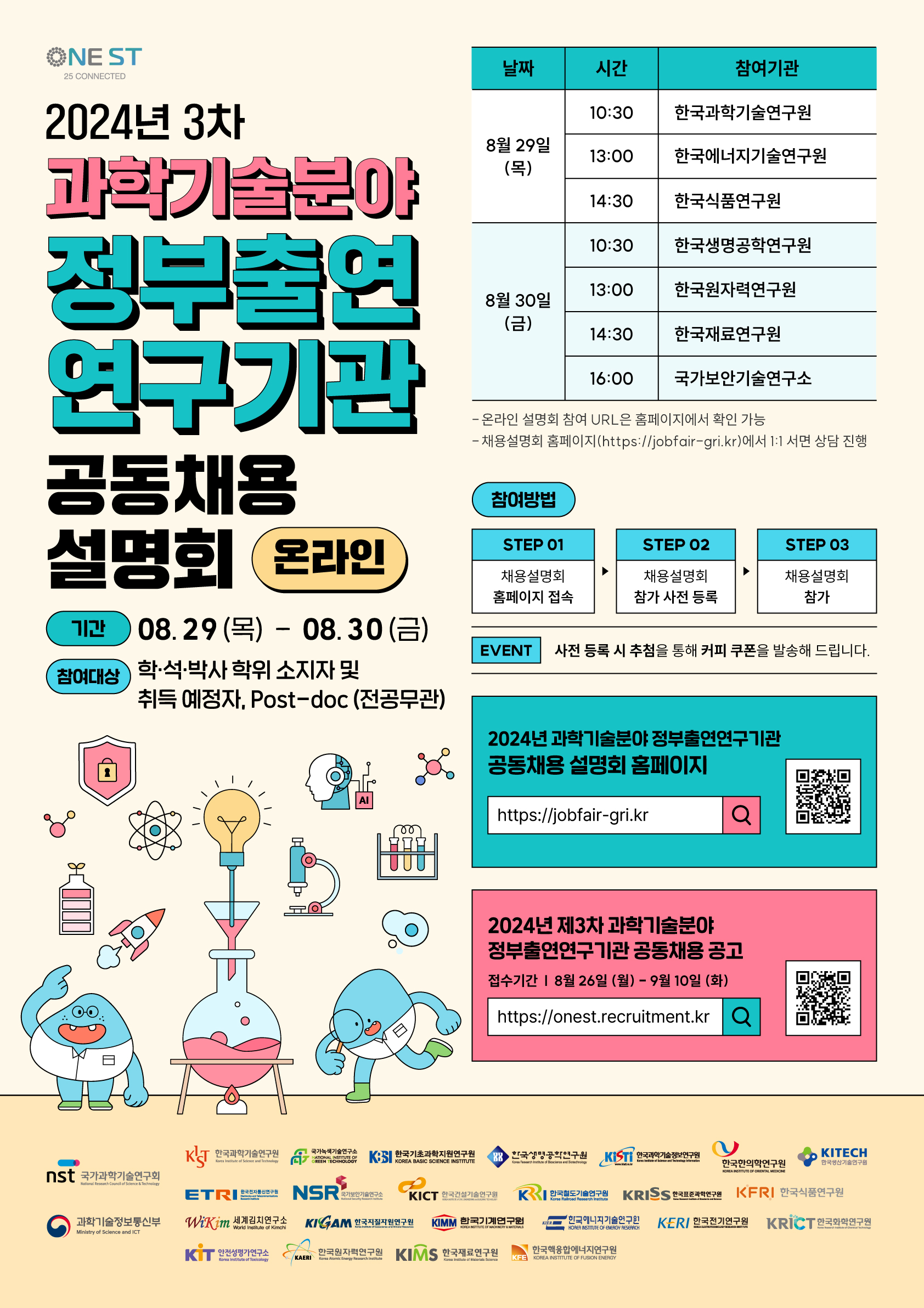 [2024년 3차 과학기술분야 정부출연연구기관 공동채용 설명회 홈페이지] - 홈페이지 URL : https://jobfair-gri.kr/